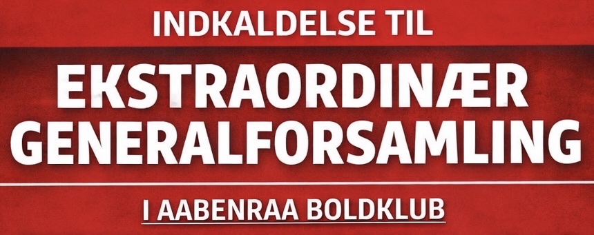 I henhold til vedtægterne indkaldes til ekstraordinær generalforsamling mandag den 16. februar 2026 kl 17:15 i Klubhuset på Aabenraa Stadion, Vestvejen 25
