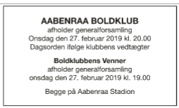 Onsdag den 27. Februar kl 20.00 afholder klubben årets generalforsamling