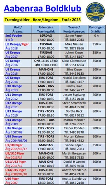 Nye spillere er meget velkommen til at prøve om det er noget for dig. Kontakt gerne træner/kontakt person inden man møder op til første træning. Alt træning foregår på træningsbanerne ved Aabenraa Stadion, Vestvejen 25